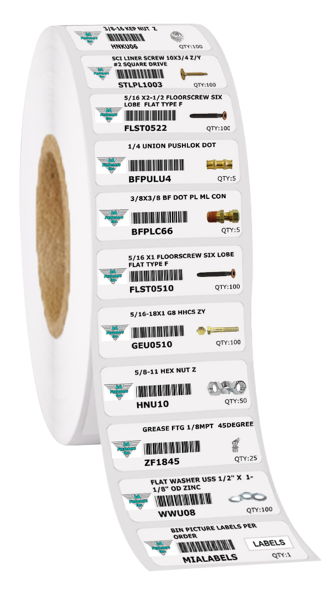 1" X 3.5" HIGH GLOSS BIN LABELS WITH LOGO AND PART IMAGE