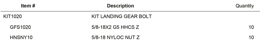 KIT LANDING GEAR BOLT