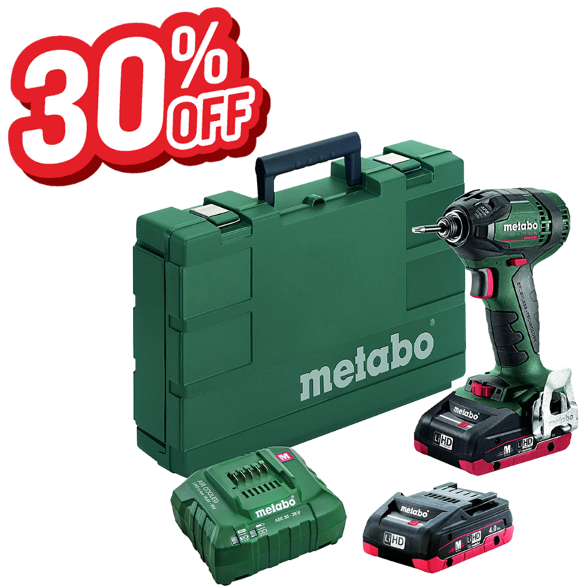 Compact cordless impact driver with 1/2" male square drive and 300 Nm • Unique Metabo brushless motor for quick work progress and highest efficiency for any application • Automatic Power Shift (APS) supports working with self-tapping screws: automatic torque reduction after drilling to prevent stripping • High torque machine with low kick-back torque • Twelve speed/torque levels for a wide range of applications • Integrated work light for illumination of the work area • Robust die cast aluminum gear housing for optimum heat dissipation and durability • With handy belt hook, can be fixed either on the right or left side • LiHD Battery Pack for ultimate power, extremely long run time and service life • Battery packs with capacity display for checking the charge status • Ultra-M Technology: highest power, gentle charging, and 3 year warranty on the battery pack