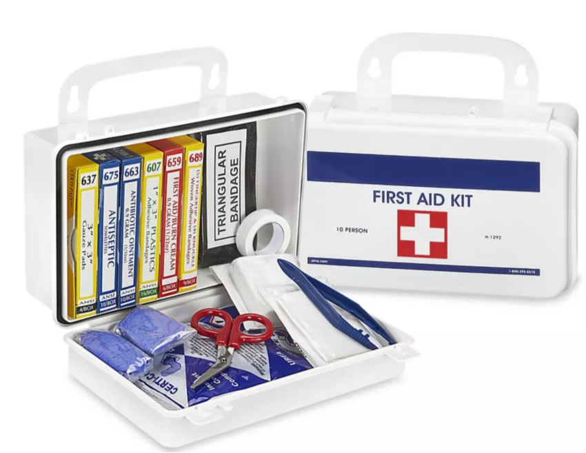 Compact and portable first aid kit - designed to treat minor injuries for up to 10 people.